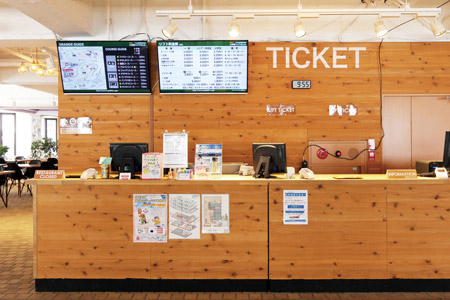 チケット売場と総合案内も兼ねた受付カウンターを入口正面に設置しております。