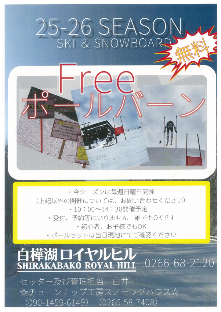 1/26はロイヤルの日! 1月26日はロイヤルの日です! 当日リフト券ご購入の先着100名様に抽選券を配布します。 抽選に当たるとお食事券を進呈! 負けても飴ちゃん差し上げますので、ぜひご参加ください。 ……